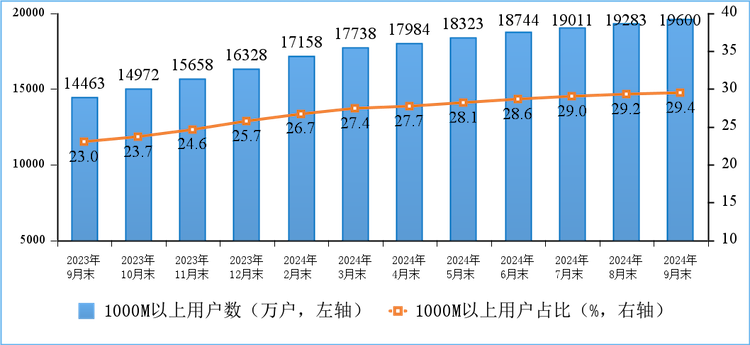 摘要:据工信部 2024 年 10 月 24 日公布的数据,截至 9 月末,我国千兆用户数达 1.96 亿户,逼近 2 亿户,占总用户数的 29.4%. 从区域来看,